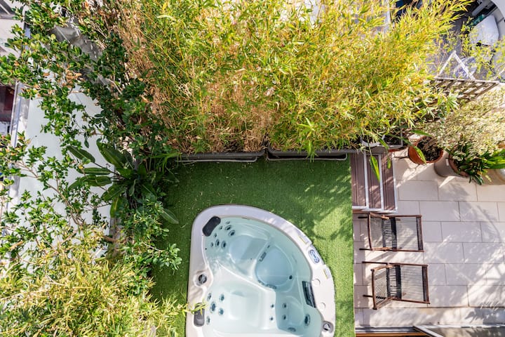 A double outdoor jacuzzi ( most guests prefer it cold during the warm summertime days in Athens, in case you wanna be warm you must give us a note in advance or keep it working at your preference temperature for 5-6 hours !)