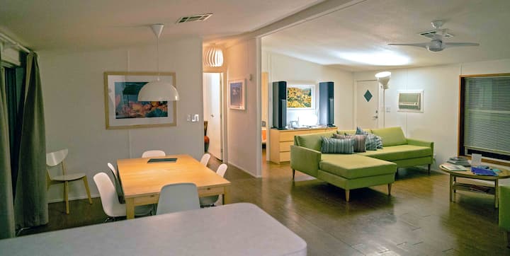 Matthew bought the property in the early 1990's, which now totals 100 acres and 10 parcels. It's a half mile long and quarter mile wide. To walk the perimeter can take a day. A fifteen minute walk take you to Coyote Hole, a Joshua Tree landmark you will find in guidebooks. This has been a favorite spot for indigenous peoples for thousands of years and you can see their petroglyphs on the rocks.