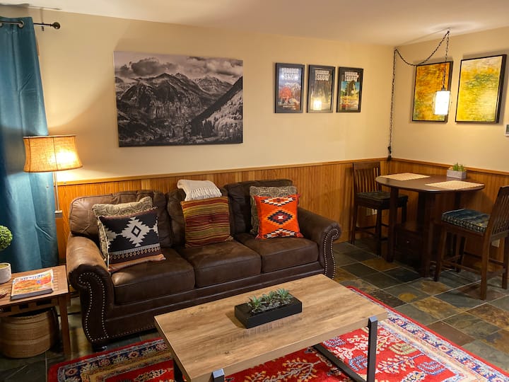A roomy, inviting place to call home in Colorados most beautiful mountain town! Nestled in the “west end” of the town of Telluride, an incredible location. The front door opens right up to Cornet creek, and just across the street from Lift 7 ski resort. Steps away from the famous Siam Thai restaurant and There bar, yet the condo is private and quiet. Only a few minutes walk to the gondola and directly across the street from the free town bus stop. Enjoy all Telluride has to offer no car needed