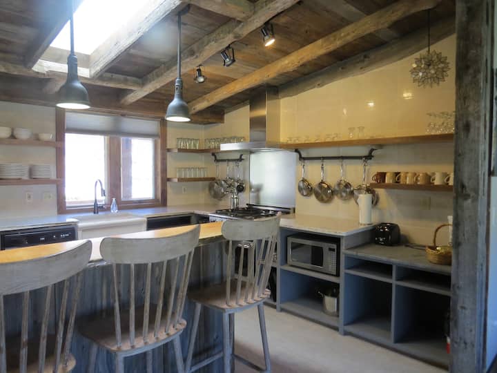 After a day in Yellowstone Park and the surrounding area, coming back to the guest house to call home base is a total treat. The beautiful setting above the Yellowstone river, and the rustic comfort of the house create a relaxing, inviting space that pulls you in. Shirl designed the home to be flooded with natural daylight and there are stunning views from almost every room. The recycled beams and barn wood have stories to tell of homesteaders that originally settled the west. The colors and wood floors are soothing and mellow.