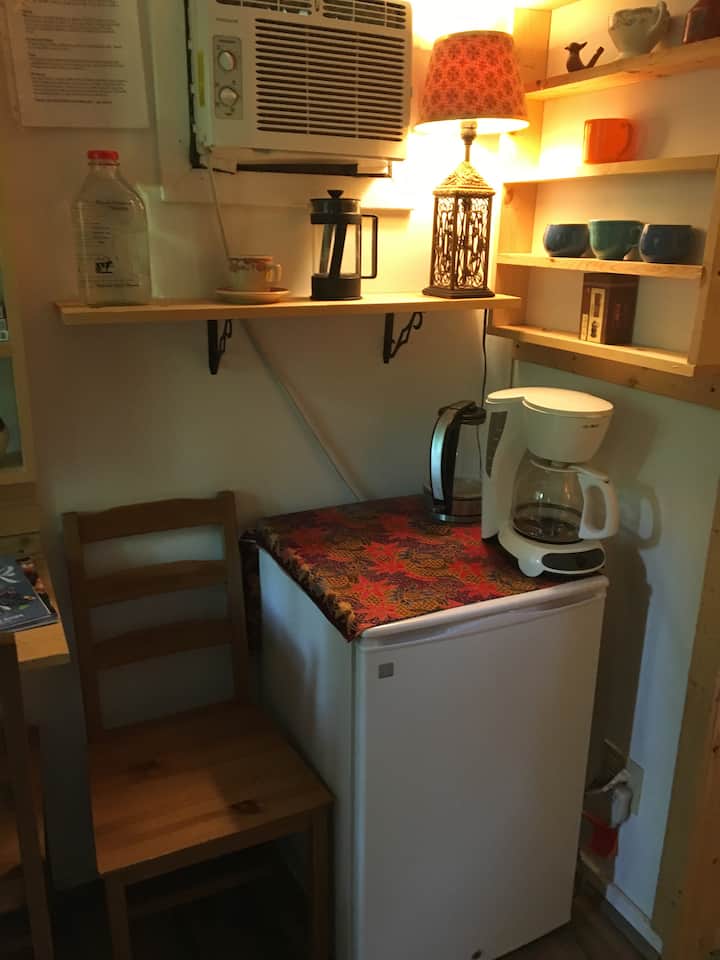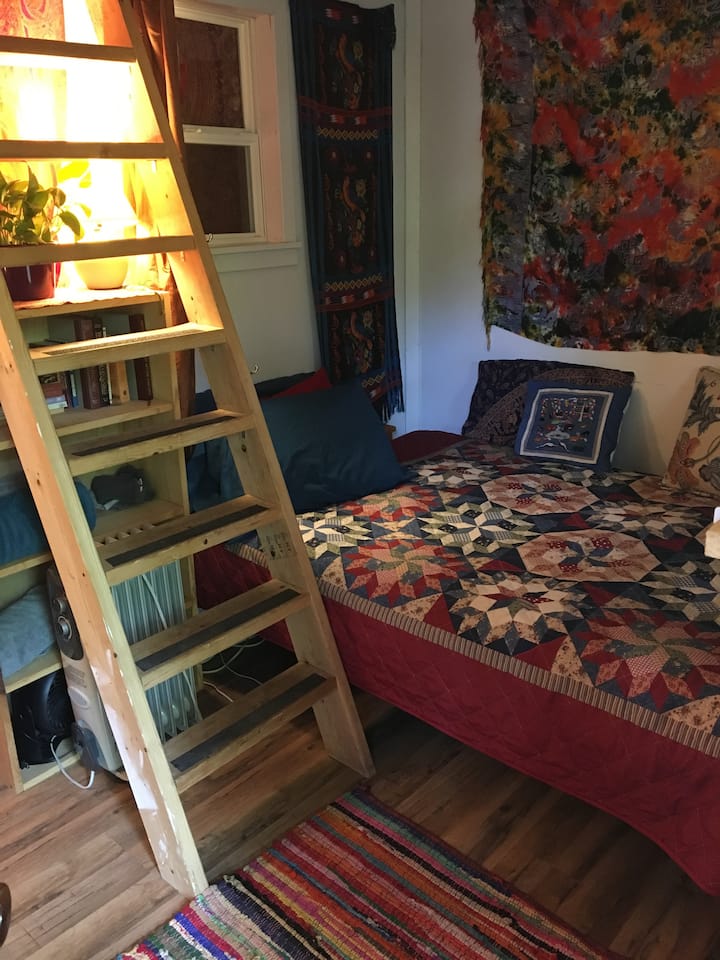 Dan & I are Bohemian musicians. We are socially and environmentally conscious. We are surrounded by nature, wildlife, and a creek. We support diversity and multiculturalism. Our space is cozy, clean & casual. We are located near campus & downtown. We welcome you & your support of our lifestyle & philosophy otherwise, we are not a good fit for each other. Please understand & respect our earthy, cherished, space.