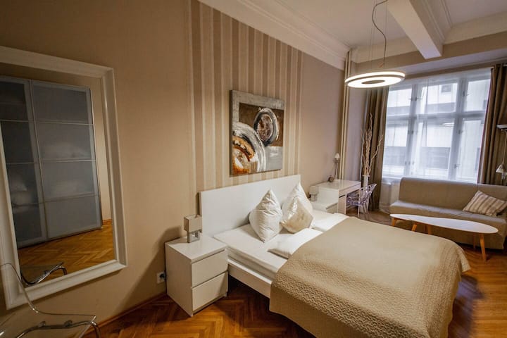 You can always find great apartment in our portfolio satisfying your needs. Our accommodations have a huge variety of locations, designs, amenities level for budget-aware travelers and ending with luxury apartments right in the Prague's center.