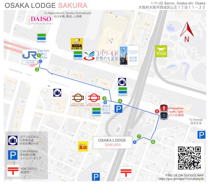 ・Our place is about 4 minute a walk from the Shin-Imamiya Station. You can check our the map that we uploaded in the picture section.