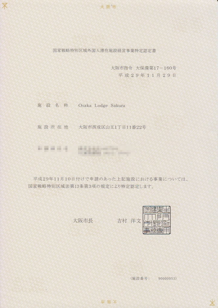 Special Economic Zoning Act | 大阪市指令 大保第 17-160号