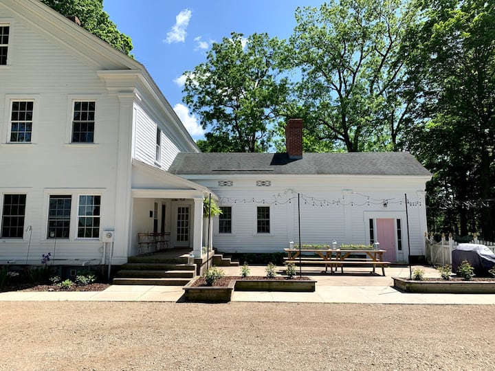 This historic house sits on 12 acres and is listed on the National Registry of Historic Places. Built in the Greek Revival style, this 1854 home makes for an unforgettable getaway for friends and family. Relax and enjoy the grounds surrounded by old growth trees and prairie landscape.