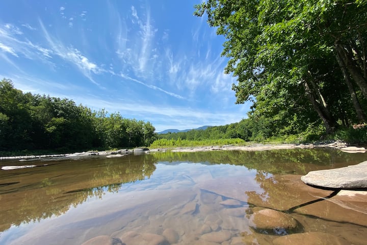 Swimming: Cooling off in the river is wonderful, but do remember that doing so is strictly at your own risk. By renting our property you the renter assume all liability when entering the river. We do not accept ANY liability. The rocks can be very slippery. Use hands and feet when climbing around on them. Make sure children wear floatation devices. Water shoes are a great idea for all to use to protect feet. Water shoes does not prevent slipping however. After rains the river rises and the currents become much, much stronger. Use your good judgement as to when to enter the river. There are fish, cray fish, river otters, beavers and toads. Please respect the wild life.