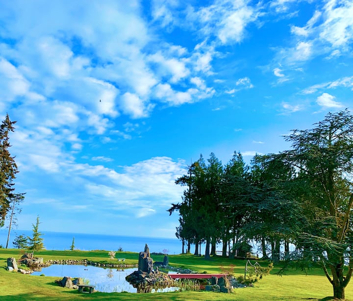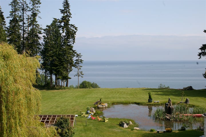 Guests are invited to explore and enjoy the entire property. While there is no direct beach access from the backyard, the views more than make up for it. Take in spectacular sunrises and sunsets overlooking the San Juan Islands and the British Columbia coastline. Relax on the deck beside the cedar gazebo and watch bald eagles perch in the old-growth cedars before diving for salmon below. On rare and lucky days, you may even spot orca or gray whales offshore.