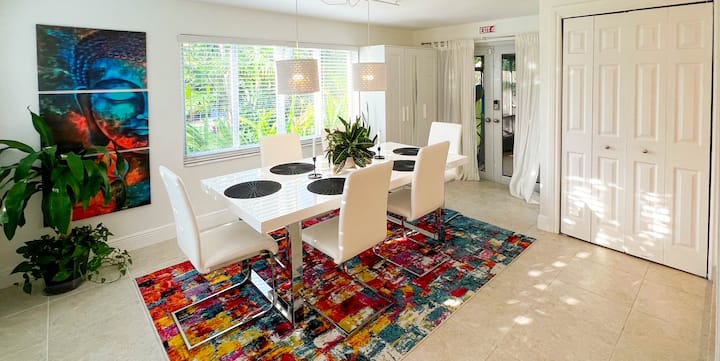Our high vibe home is ideal for your R&R retreat. We're only 5 min. away from Hollywood beach, 30 min. north of Miami and 15 min. south of Fort Lauderdale, in a very quiet neighborhood, where you'll only hear the sounds of birds and wind gently passing through the palm trees.
