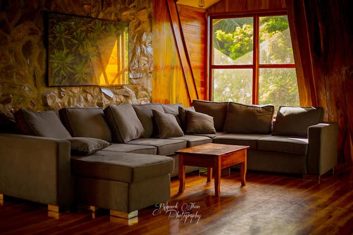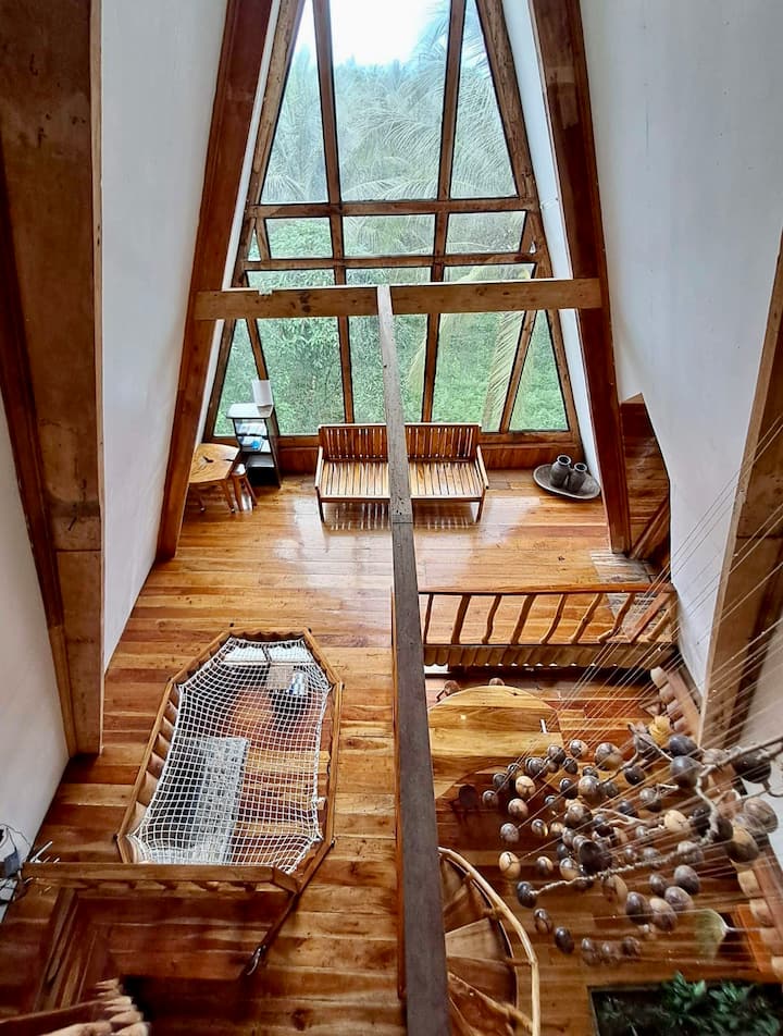 Snooze and relax in a secluded, enchanting and massive “A-framed” mahogany cottage surrounded by lush greens and wild flowers under clear blue skies. The breathtaking views of the surrounding mountains and sea by the mountainside of the Hibok Hibok Volcano awaits you. Here, ‘tweets’ are from real life wild birds and ‘likes’ are from the unforgettable experiences awaiting.