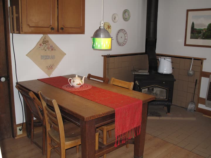 My ancestors didn't have any modern technology; we've added some but not too much. The solar electric system powers the refrigerator and the lights. There is running water and a simple way to heat it up. There's a modern cooking range, which doesn't fit the decor but works swell! There's a special toilet--ask for details if you're curious. If you want to use a computer, you can use a laptop and charge your battery but to get internet you'll need to drive to town. If you want to make a call, you can use the land line up at our house or take a short walk or drive up the hill to use your cell phone. Here you can experience what life was like before the constant ringing and beeping of now.