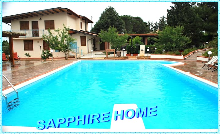 SAPPHIRE HOME HAS SPLENDID SALT WATER SWIMMING POOL meters 12 x 6. Salt Electrolysis System, hypoallergenic to protect your skin. Complete kitchen with everything you need, without sparing useful utensils for you. BEKO dishwasher new. 10 courses.