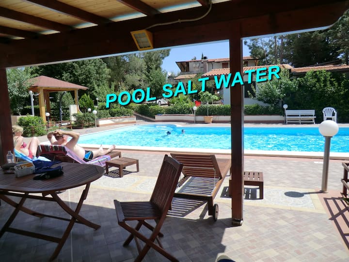 My property is eco friendly, cool inside also when outside is hot: roofs and walls very thermally insulated, no need of air conditioning. High pine trees makes the air very oxygenated and fresh. Pool salt water without without adding chemicals.