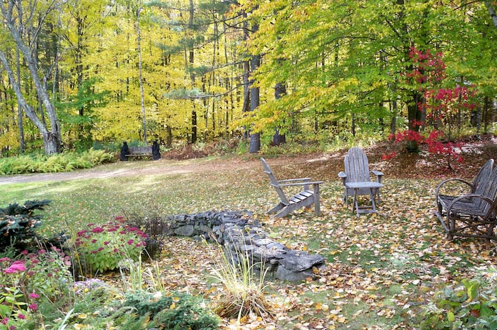 Built by actress Bette Davis in 1940, Butternut retains the character of that grand era while accommodating family and friends in contemporary style. Peace and privacy prevail on the 22 acre property overlooking the White Mountains. It is located on a quiet birch-lined road three miles from Sugar Hill and Franconia. The house is comfortably furnished with country antiques, accessories, and artworks.