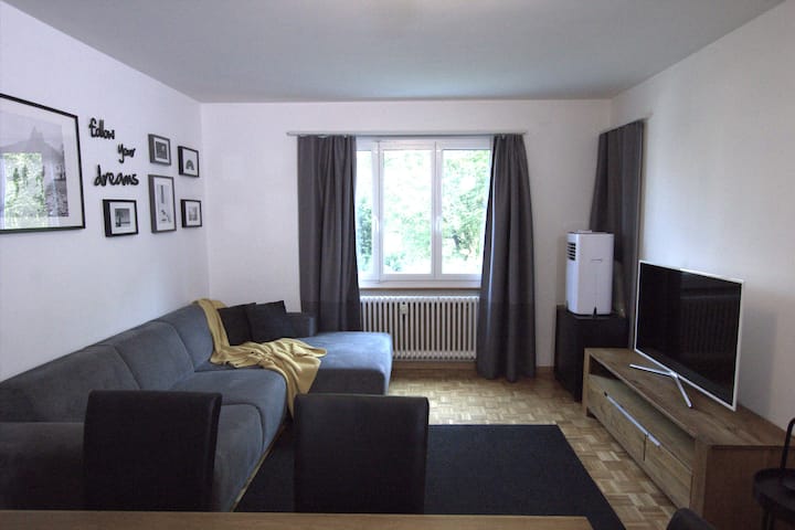 The apartment is on half-ground level, meaning a small staircase (shown in the picture of the building entrance hall). Fast internet is available.