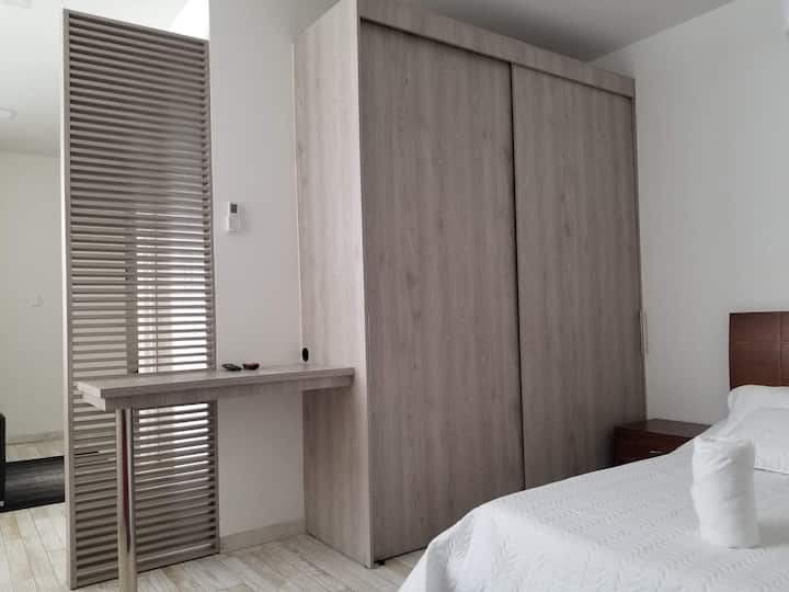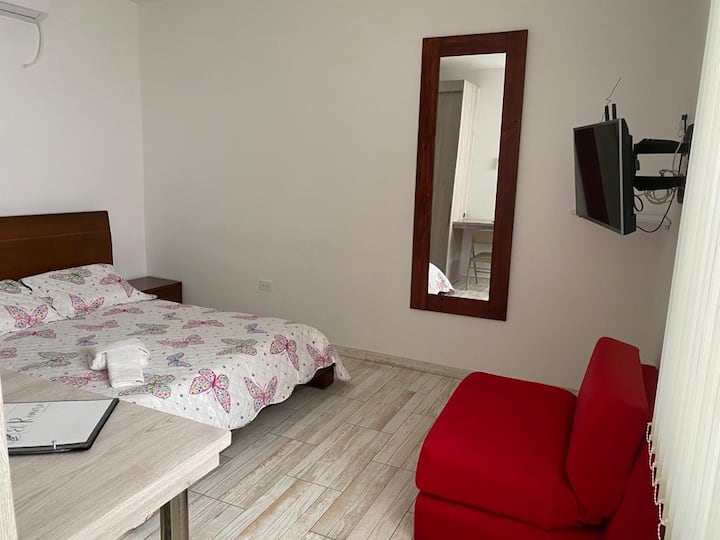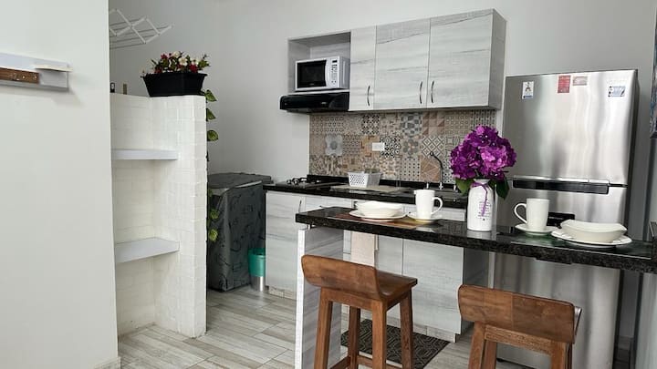 The host has equipped this place for long stays—kitchen, washer, and AC included.