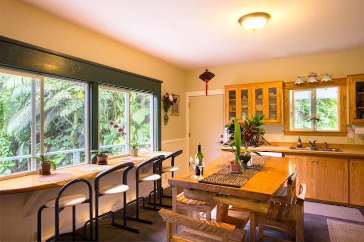 *Aloha Falls is heaven on Earth! You will find yourself nestled in the jungle with views of waterfall paradise, engulfed by bamboo and fragrant flowering trees with orchids nestled in their branches. Enjoy the space for a private retreat or invite your family and friends to fill the house. The entire home and property is filled with healing intentions that evoke peace and happiness. Inquire right away for a transformative spa retreat day and curated farm to table meal