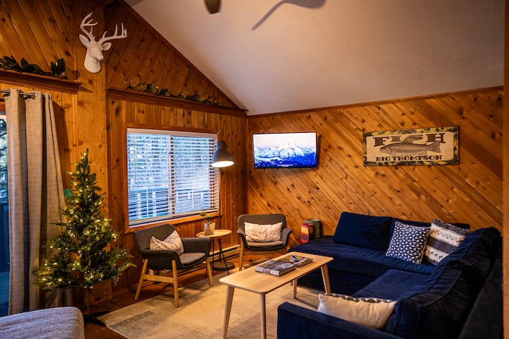 You found it! Beautiful cabin retreat on peaceful, mountainous property. Nestled between a pine forest and bouldery hill. Private hiking trail for guests with views accessing 13 acres and Nat Forest! Propane fire pit, king bed w/ new mattress + nice queen sofa bed. Enjoy close proximity to Estes Park and Rocky Mountain NP while escaping the hustle. The Canyon Cabin is located across Big Thompson Canyon Rd from a prime fishing hole on the Big Thompson River. Superhosts 43x. Permit: 20-ZONE2846.