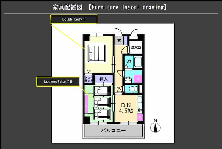 Kitahama Alley is just a short walk away!Convenient for sightseeing/near the ferry terminal/for up to 5 people/1 free parking space/Room 203