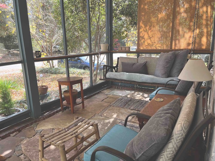 I was born and raised in North Carolina. I have always wanted to call a place my own. Now true, I want to share my space with other like-minded. I’ve studied dance much of my life, play tennis, garden, love the out doors, biking, hiking, swimming and being social. I enjoy meeting new people and am an extreme lover of travel. I've lived in Lyon, France, NY, and been to many places around the world with my family. I like cooking and sometimes a nice peaceful night watching Netflix. I'm a very open and accepting person and look forward to having you stay with me!