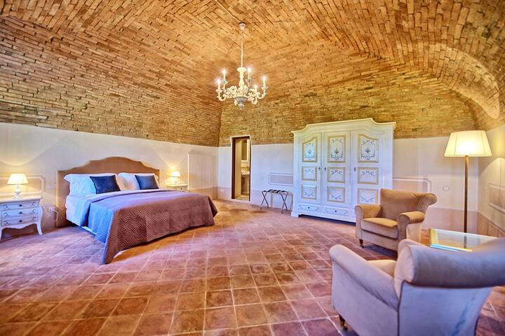 Castello Grand Suite is the largest Apartment in the Villa Sant'Anastasio. Spacious 150 sq.m suite with grand fireplace.