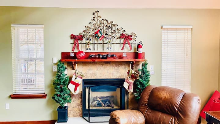 The Mt. Maplewood Chalet is a SPACIOUS 3200 sq. ft. home that specializes in family vacations. Our 6 bedroom, 3 bath home with outdoor HOT TUB, 2 indoor Jacuzzi jetted tubs, 2 fireplaces, 3 decks, 1 Xtra-large stocked Kitchen, hardwood, tile floors, cathedral, vaulted ceilings, central AC, fire pit, pool table, foosball, air hockey, piano, multiple televisions, washer, dryer. The decks overlook the wooded property on a 1/2 acre of land. The decks overlook the wooded property. It is a perfect home for large family gatherings and is kid-friendly with a crib, pack-n-play, and high chair. The 1st level has the washer/dryer, 3rd full bathroom, Air Hockey, and portable foosball. * PLEASE NOTE: List all guests 6+ as "Adults" for proper community pricing. Thanks!