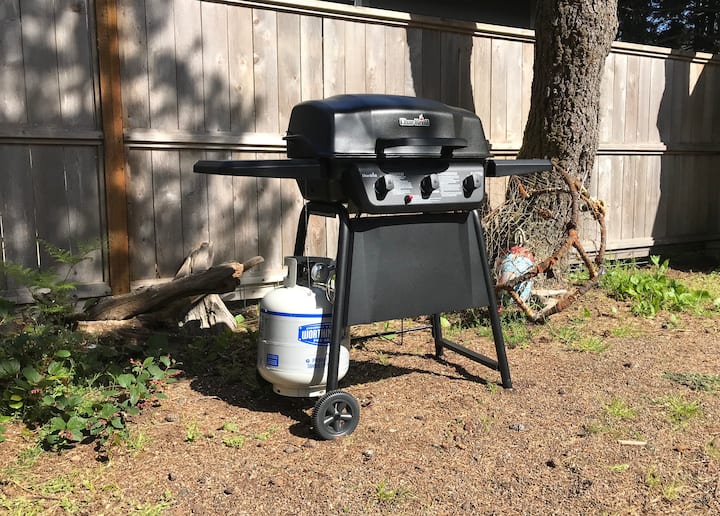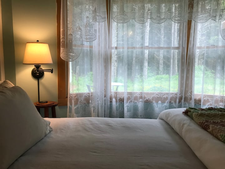 The efficient kitchen is well equipped with a propane gas stove/oven/broiler, microwave oven, refrigerator/freezer, toaster, slow cooker, electric tea kettle, French press coffee maker, coffee bean grinder, blender, and electric milk frother/foamer/warmer. You are amply supplied with pots, pans, knives, utensils, mugs, glasses, bowls, dishes and silverware you will need for most of your meals. Coffee, a variety of teas, and salt & pepper are also provided as standard for your enjoyment.