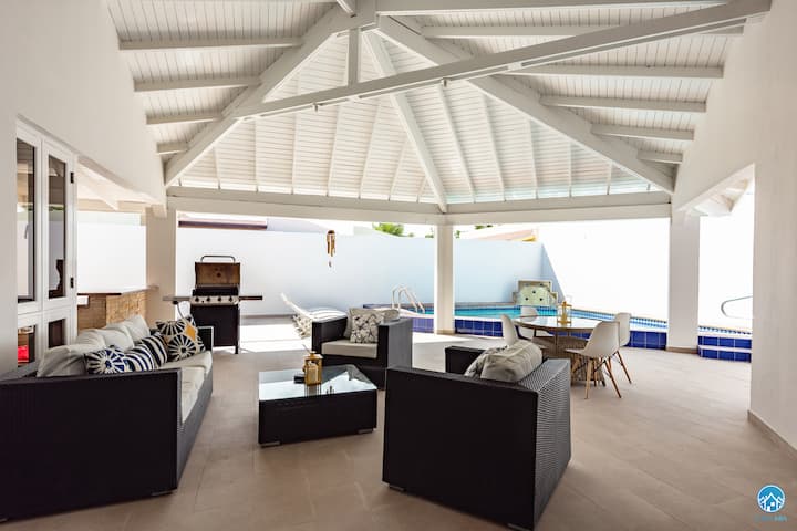 - Villa (3 bed and 2.5 bath) + pool is located in Palm Beach across the road from the Palm Beach Mall (5 minute walk!). Restaurants - High rise hotels and casino's and most important: our beautiful BEACH! AROUND THE CORNER!