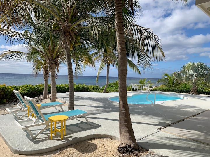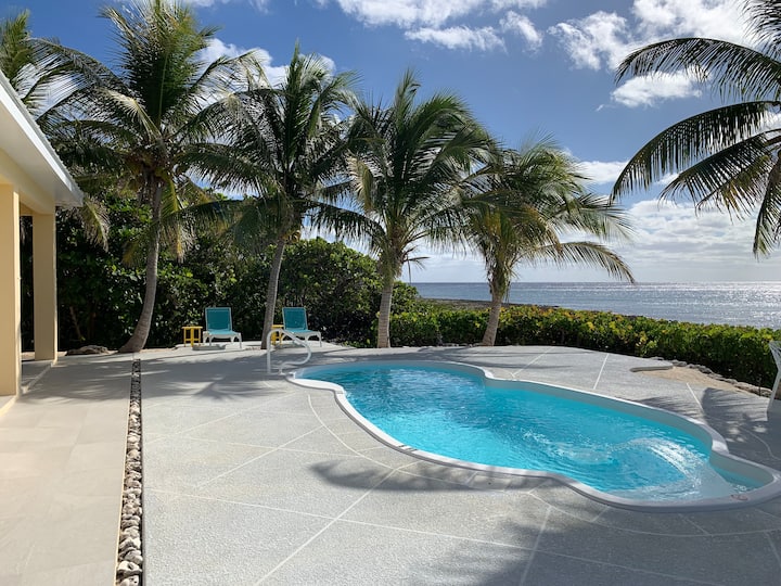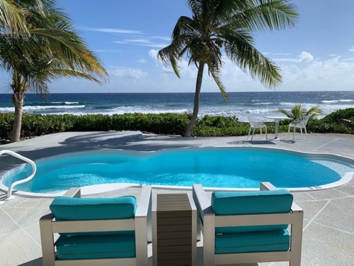 We looked for houses on the island but couldn't find the perfect house so we bought the perfect lot, in the perfect location and designed our dream home: oceanfront, private pool, small inside but lots of outdoor living space and modern yet still with a Caribbean flare.
