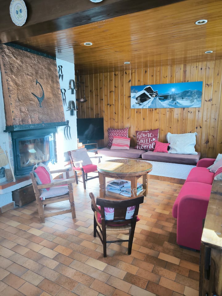With its warm decor and bright spaces, this chalet is designed to accommodate up to 16 people, offering everything you need for a friendly stay: a fully equipped kitchen, a cozy living room with fireplace, and a terrace with panoramic views of the surrounding peaks.