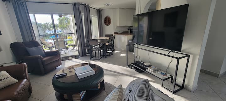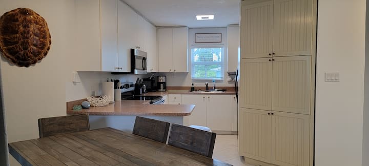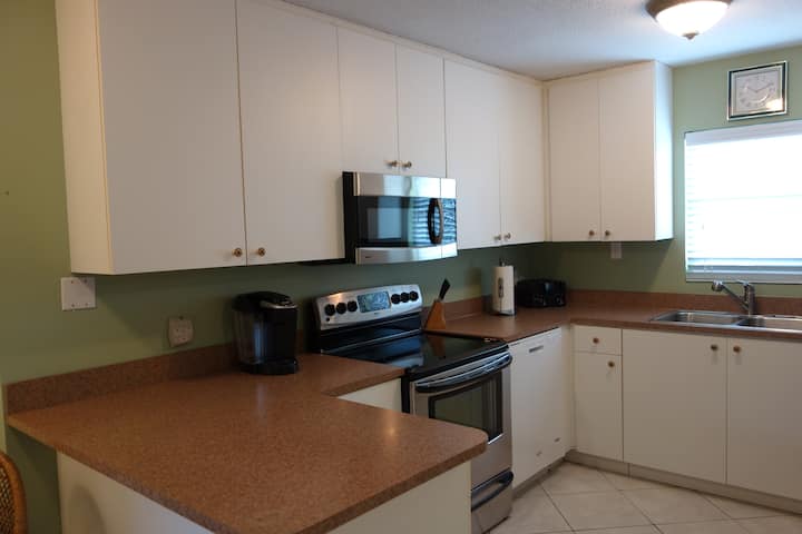 We have a fully stocked kitchen including dishes, utensils, an electric stove, and oven, full size refrigerator, microwave and dishwasher etc.. You decide whether to visit the local grocery stores and eat at home or, you can decide to experience some of the many wonderful restaurants on the island, the choice is yours. Since we are centrally located in the heart of Seven Mile Beach, and very close to George Town with many restaurants and bars just a short walk away. From casual dining to fine dining and everything in between. Watch the game and grab a bite to eat at one of the local sports bars.