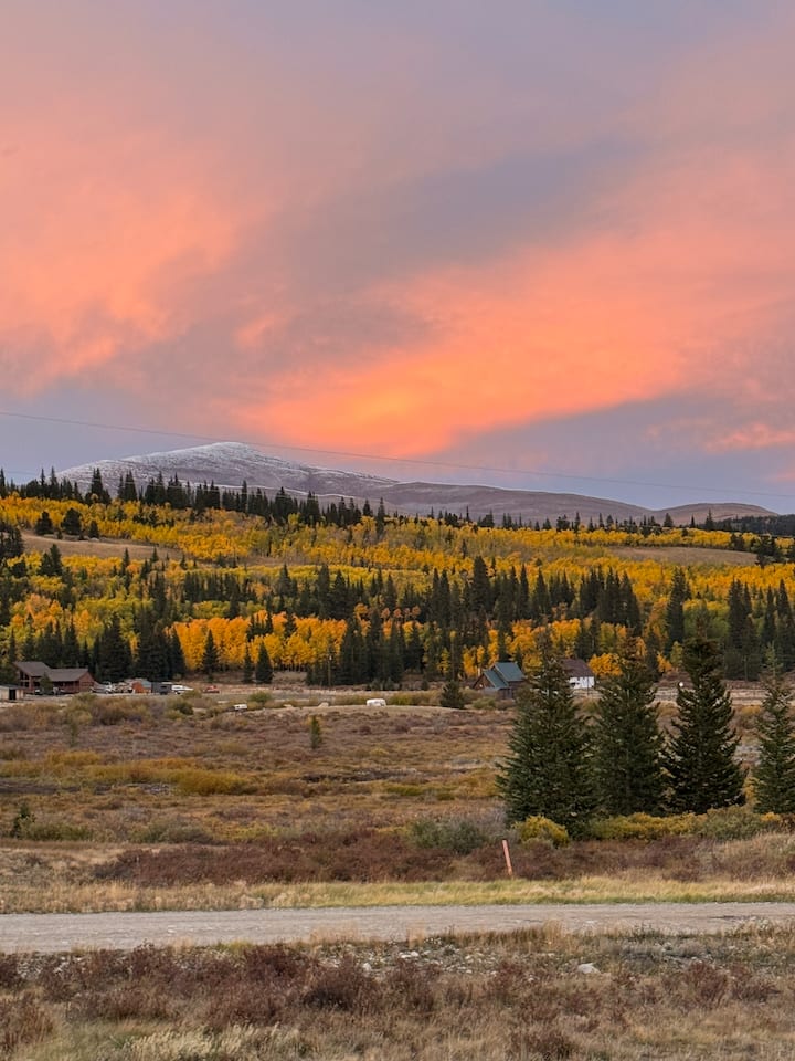 Leave everyday stress behind & unwind at Alma Basecamp--centered in Colorado’s Rocky Mountain playground. The cabin sits at 10,000 ft & overlooks snow-capped views with a gorgeous aspen grove in back. It's the perfect basecamp for skiing (Breck 25 min. away), hiking, biking, fishing & any off-road adventure you could ask for. After a long day in the mountains, Alma Basecamp is where friends & family can kick back by the wood stove, enjoy a home cooked meal, & take in the views from every window!