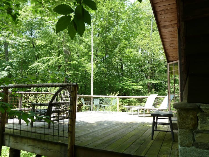The Solar Cabin is the favorite cabin among guests! A large open room with plenty of windows and a massive private deck shrouded with black birch saplings. The cabin has a queen sized bed and two twin beds, as well as a couch. THERE IS NO ELECTRICITY IN THIS CABIN.