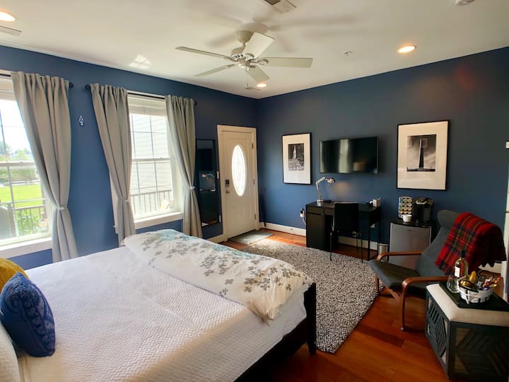 Suite w/ parking; 8am in, 4pm checkout