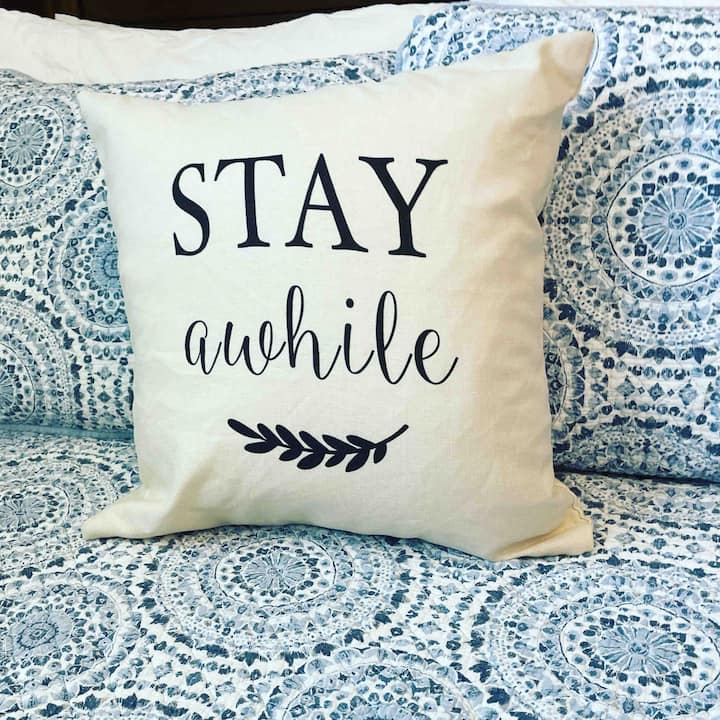 The room-darkening shades and extra bedding are loved by guests.