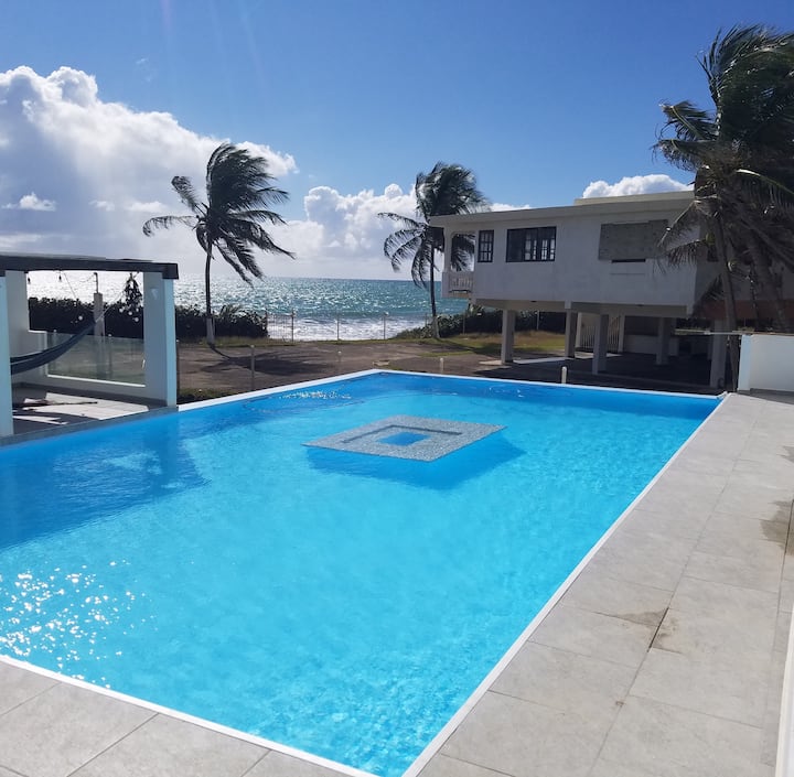 This MODERN BEACH HOUSE is in paradise and is ready to be enjoy !!! with a 44ft. INFINITY POOL FRONT BEACH where you can relax at the sound of the tropical breeze under the gazebo in the hammock or just walk a few steps to have a sun tanned listening to the waves.A great place to practice water sports as surf,snorkeling,or walk a short distance to Jobos Bay to do some paddle boarding,kayaking or take a trip in boat "La Paseadora".
