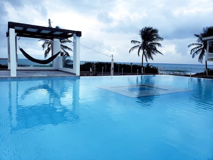 Our INFINITY POOL it's the most fascinated part of the house AND IS PRIVATE FOR OUR GUESTS a 44ft by 25 could be enough to relax and get started your vacations,with a gazebo , hammock ,and pool chairs feeling the breeze and the sound of the waves.