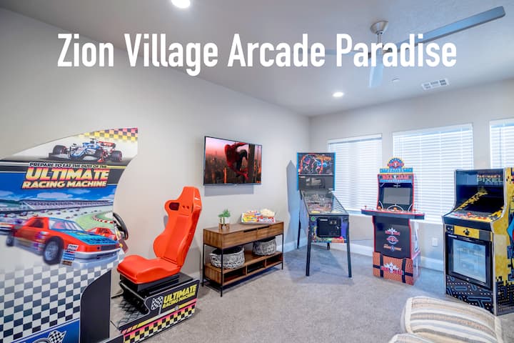 Just 30 minutes to Zion National Park, Snow Canyon, Tuacahn Amphitheater, St. George's Ancestor Square, Red Rock Cliffs/Pioneer Park and more! 15 to Sand Hollow Reservoir! On the property there’s a private BBQ and Jacuzzi, plus classic Pac-Man, NBA Jam arcade games, PS3, pinball and NES Classic!