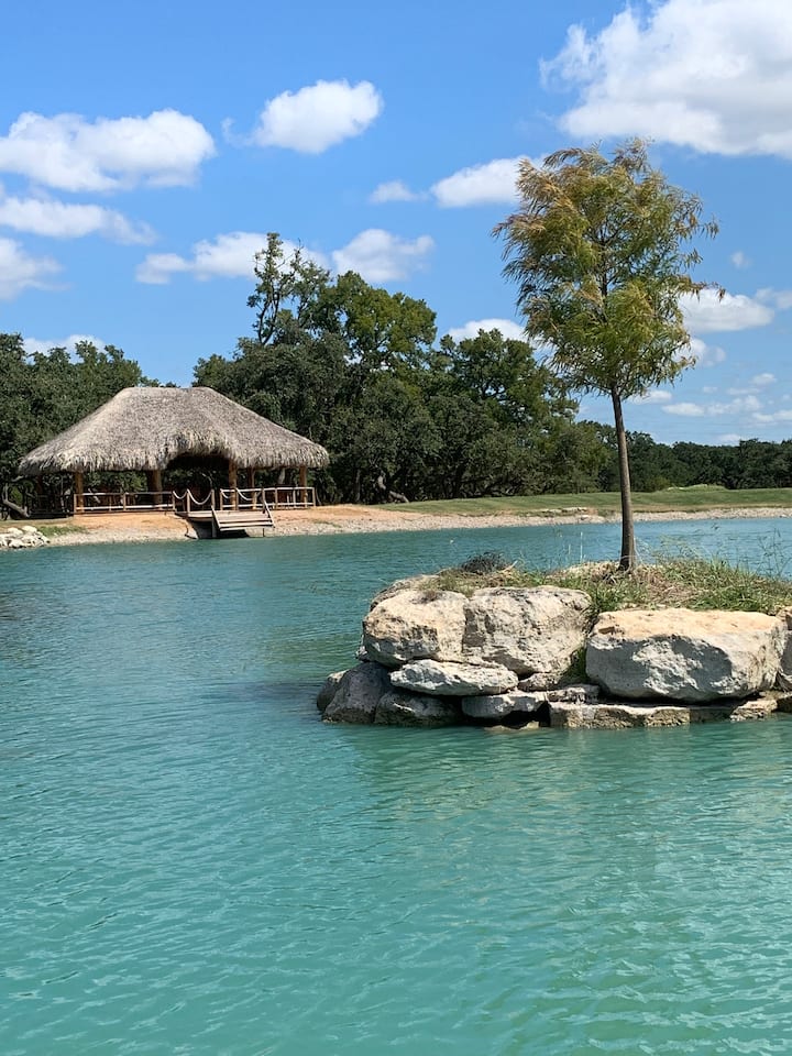 Our modern cabin is set on 40 beautiful acres of pristine Hill Country. It sleeps up to 8 people; perfect for small families, couples, or friends looking to relax and enjoy some country luxury. Guests have access to fishing, swimming, roasting s'mores at the fire pit, lounging in the gazebo, and exploring the property.