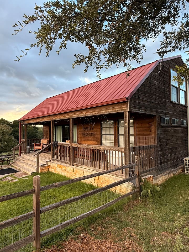 The Sweet Serengeti Cabin is the perfect Hill Country getaway. The Cabin is 1200 square feet and was built in 2017. It looks like a traditional barn from the outside but is full of new appliances and modern comforts on the inside. You will also have access to the pool table, ping pong table, and the built-in barbecue up at the main house.