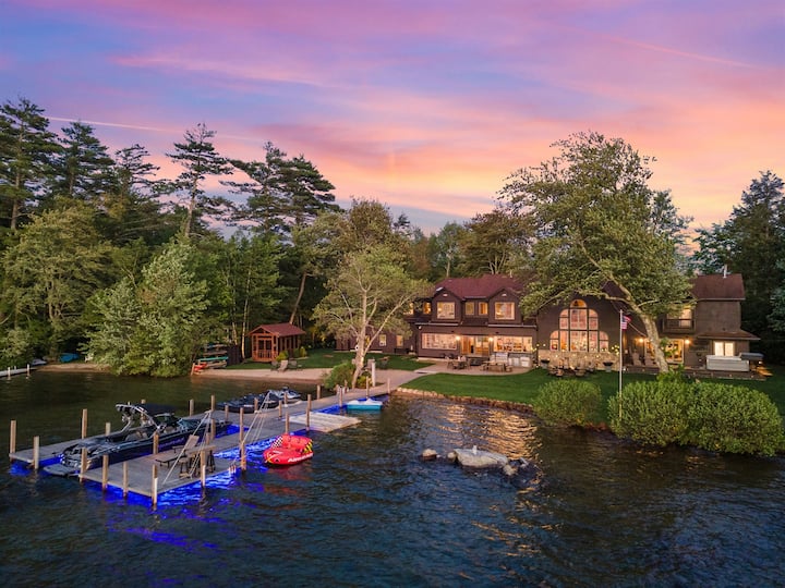 This lakeside oasis boasts seven spacious bedrooms, easily catering to 20 guests with space to spare.