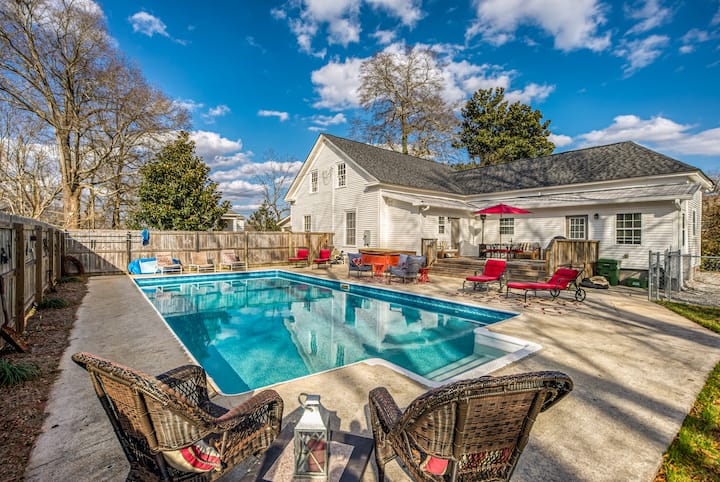 This unique home is private, yet walking distance to the hustle and bustle of downtown Monroe. Whether you come to enjoy a summer day by the pool, a wedding in the area or just a peaceful weekend away, this cottage is perfect for you! The front porch offers the perfect place to sip on a warm cup of coffee and the back deck/pool area is the perfect place to grill out.