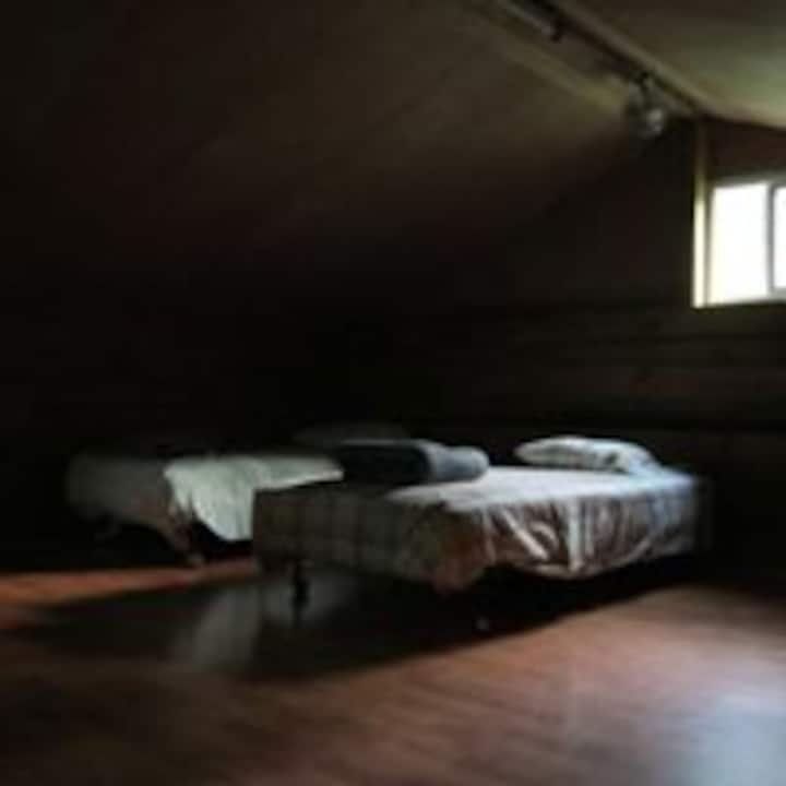 1 queen bed, 4 single beds, 1 couch