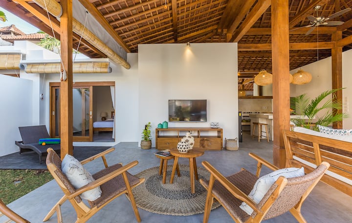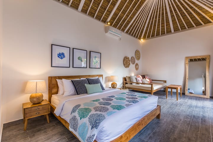 The living/common area of this villa is semi-open, which means there is no air conditioning in this area. However, ceiling fans are available for your comfort.