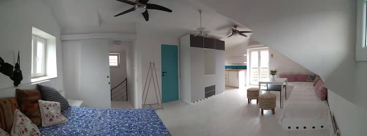 The large open-plan bedrooms and the wooden floors don’t offer a lot of privacy (sub-optimal acoustics) ... but they do offer a lot of fun and togetherness. The house works well for three families, but we like it best for two, with kids and perhaps a set of grandparents in tow. Or perhaps for four couples or a group of friends. Ideally you're 8 to 10 guests. 12 works but is tight, and any more than that is downright crowded: Please check the floor-plans at the end of the photo gallery to understand how the bedrooms are set up. (If you're an extra big or extra small group, or coming in the off season, please let us know, and we may be able to negotiate a different price.) Ats far as fit out, here’s the aforementioned new Dalmatian stone grill in the courtyard, and a full kitchen on the ground floor with everything you'll need (ice-maker, blender, immersion blender, pasta maker, ice cream maker, etc.) and a washer and dryer. There's also a second smaller kitchen in the attic flat with a second washing machine. The house has three full bathrooms, and there are ceiling fans and air-conditioning in every room. There are also lots of bicycles, paddleboards, kayaks and windsurfers that are yours to use gratis. Oh, and we have more snorkeling equipment than you'll need and more Legos than your kids will :-)