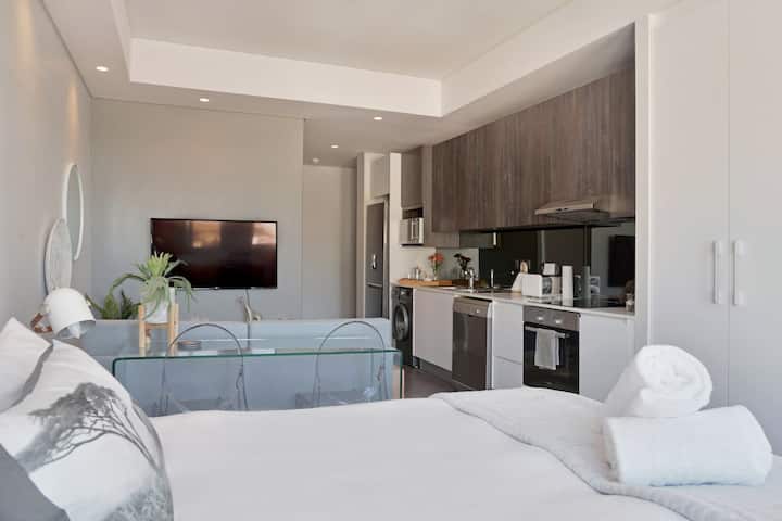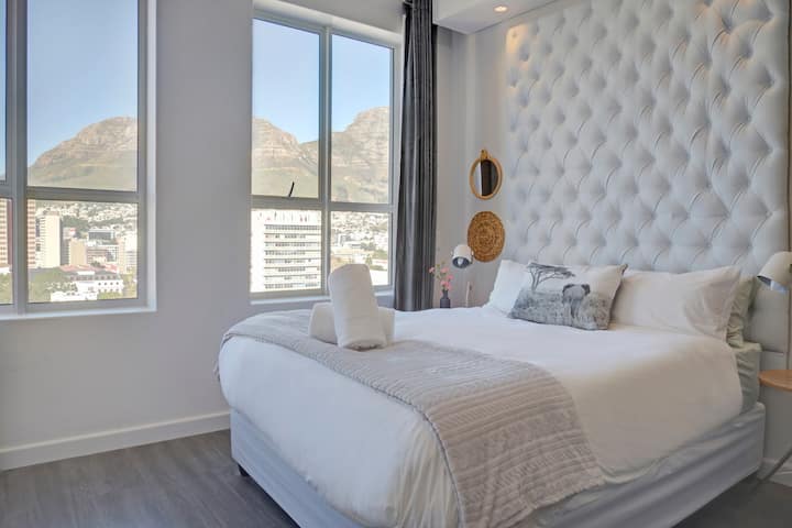 Make yourself at home in this bright, stylish, and comfortable designer studio right in the heart of Cape Town. Wake up to beautiful views of Table Mountain and enjoy being just a short walk away from some of the city’s most popular neighbourhoods. The building has 24/7 security and splash pool overlooking Bo-Kaap.