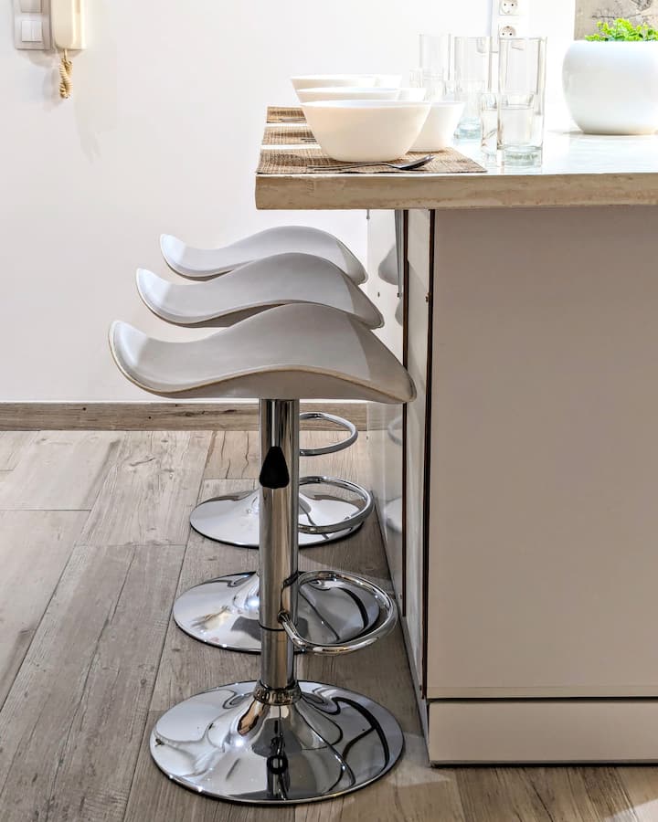 The studio's minimalist architecture seamlessly blends old charm with modern design, creating an oasis of tranquility in shades of white and grey. The lighting is thoughtfully designed, with both functional and relaxing options.