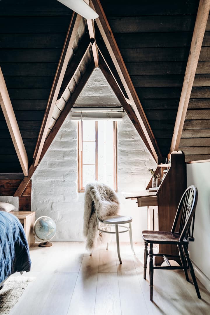 Step inside this historic converted stable, now a charming mudbrick loft and feel the embrace of rustic Tasmanian country life. Surrounded by lush gardens, serenaded by birdsong and visited by wallabies at dusk and dawn, this is a place where time slows down. Cosy up by the fire as night falls and watch the Milky Way light up the sky — the perfect setting for a romantic weekend escape.