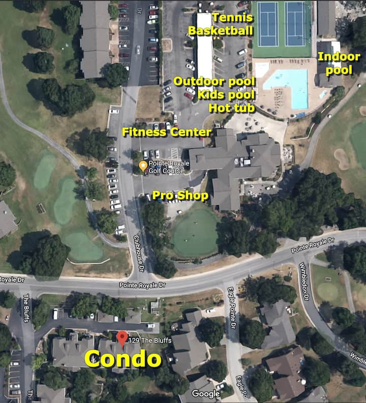 Parking available near condo in The Bluffs area or across the street.