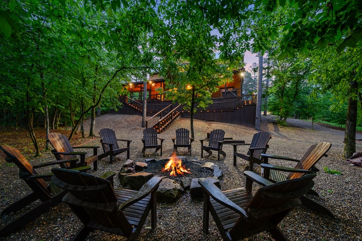• Two-story cabin with indoor and outdoor entertainment areas