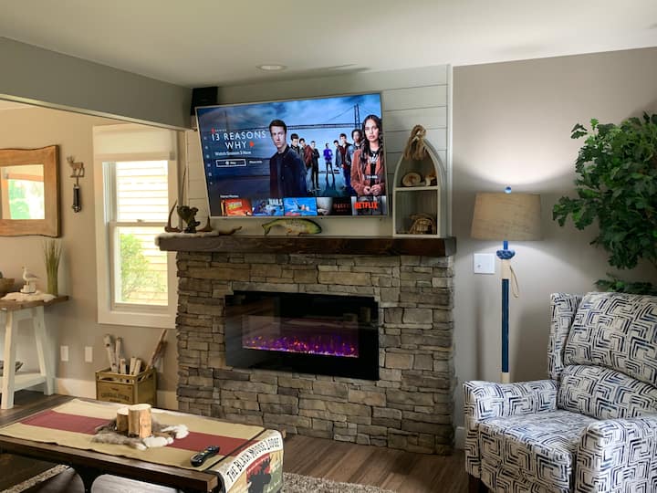 *This home has Large flat screen TV's in Living Room and Both BDRMS. All new kitchen cabinets, Side by Side Refrigerator with Ice Maker, Electric Stove, Microwave, and includes Dishwasher, Keurig Coffee pot, Regular 12 c coffee pot. New Flooring through out, and new Furniture.. Relax by the electric fireplace indoor or the backyard firepit. NO SMOKING IN UNIT